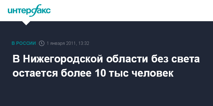 Москва. 1 января. INTERFAX.RU - Более 10 тысяч человек остается без электроснабжения в Нижегородской области, сообщает МЧС. По состоянию на 12:00 1 января, без электроснабжения остаются четыре муниципальных района, 57 населенных пунктов, 10 тысяч 218 человек, говорится в сообщении, размещенном на сайте ведомства.