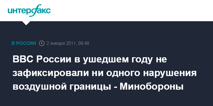 Москва. 2 января. ИНТЕРФАКС-АВН - Более 300 тысяч воздушных судов, из которых свыше 130 тысяч были иностранными, сопровождались в 2010 году в воздушном пространстве Российской Федерации боевыми расчетами радиотехнических войск (РТВ) ВВС, сообщил "Интерфаксу-АВН" официальный представитель пресс-службы и информации Минобороны по ВВС полковник Владимир Дрик.