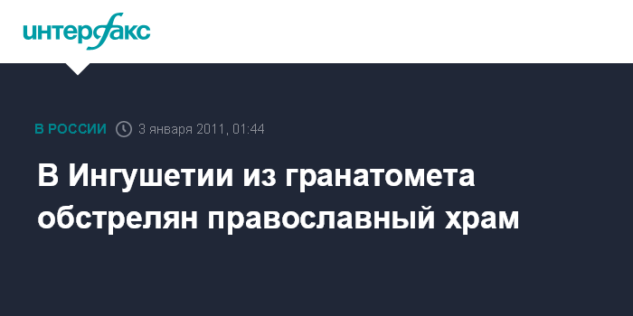 Ростов-на-Дону. 3 января. ИНТЕРФАКС-ЮГ - Неизвестные обстреляли в воскресенье из подствольного гранатомета здание православного храма в станице Орджоникидзевской (Ингушетия), сообщили агентству "Интерфакс - Юг" в правоохранительных органах Сунженского района.