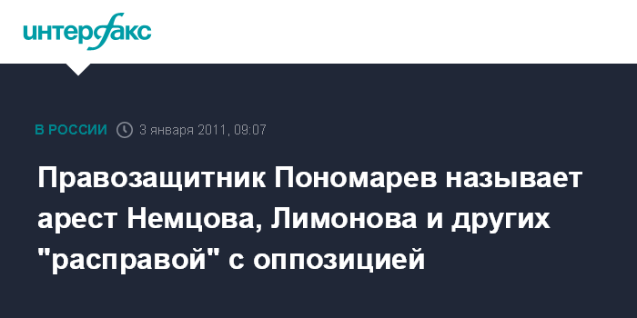 "Это расправа. Особенно вызывающе выглядит арест на 15 суток Немцова", - сказал Л.Пономарев.