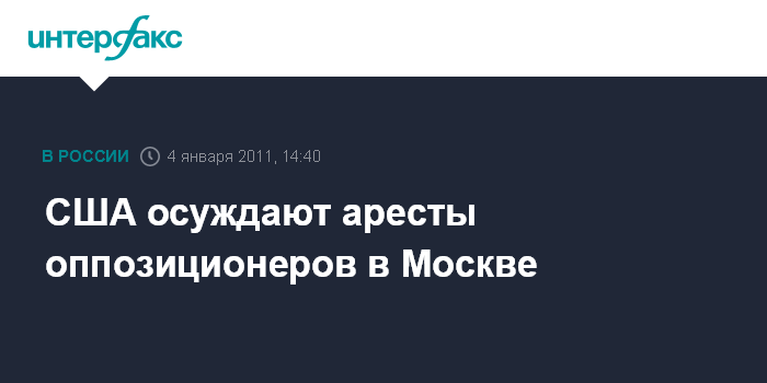 Москва/Вашингтон. 4 января. INTERFAX.RU - Вашингтон подверг критике случаи задержания участников акций оппозиции в Москве 31 декабря минувшего года, сообщает британская телерадиокорпорация BBC. Как говорится на ее сайте, официальный представитель государственного департамента США Филип Кроули на брифинге в Вашингтоне подчеркнул важность права на свободу собраний, которое закреплено в российской Конституции, равно как и в международных соглашениях, под которыми стоит подпись России.