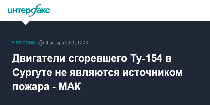 Двигатели сгоревшего Ту-154 в Сургуте не являются источником пожара - МАК