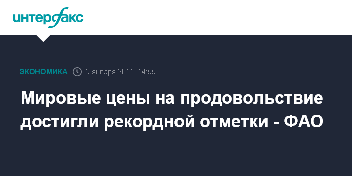 Мировые цены на продовольствие достигли рекордной отметки - ФАО