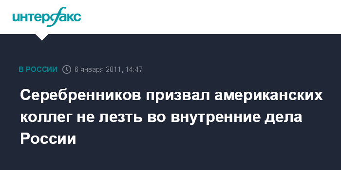 "Моя личная оценка, которая совпадает с мнением моих коллег, других сенаторов, состоит в том, что это попытка влиять на наши дела. А не надо лезть в наши внутренние дела. Со всеми нашими хулиганами мы сами разберемся. Никому не позволено попирать закон", - заявил в четверг "Интерфаксу" первый заместитель председателя комитета по обороне и безопасности Совета Федерации РФ Евгений Серебренников.