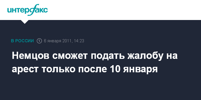 Москва. 6 января. INTERFAX.RU - Адвокаты одного из лидеров движения "Солидарность" Бориса Немцова заявили о невозможности обжаловать административный арест их подзащитного из-за длительных выходных.