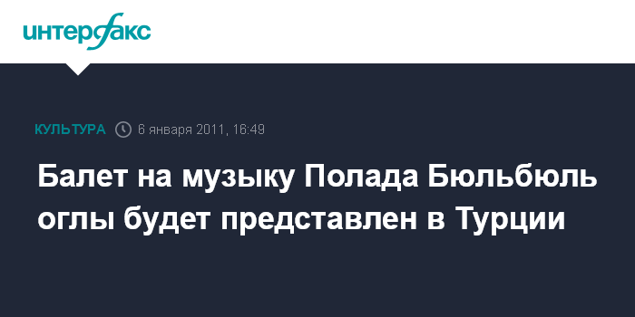 Баку. 6 января. INTERFAX.RU - Балет "Любовь и смерть" на музыку народного артиста Азербайджана Полада Бюльбюль оглы будет представлен в Турции, сообщили агентству "Интерфакс-Азербайджан" в управлении культуры и туризма Баку.