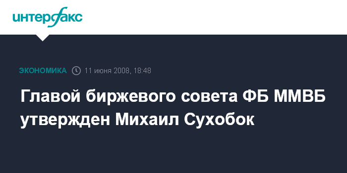 Главой биржевого совета ФБ ММВБ утвержден Михаил Сухобок