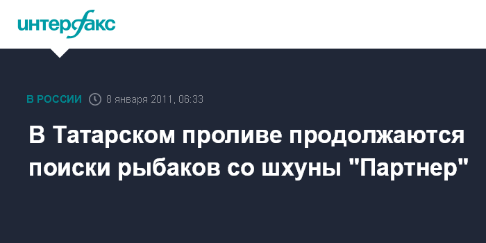 Южно-Сахалинск. 8 января. ИНТЕРФАКС-ДАЛЬНИЙ ВОСТОК - Поиски рыболовецкой шхуны "Партнер", пропавшей в Татарском проливе в пятницу, до сих пор не дали результатов, сообщили агентству "Интерфакс-Дальний Восток" в пресс-службе ГУ МЧС по Сахалинской области в субботу.