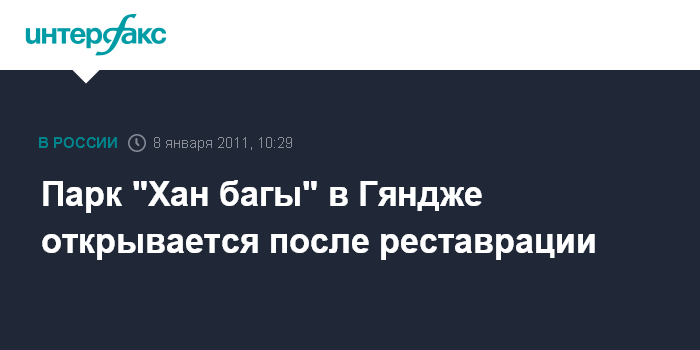 Гянджа. 8 января. INTERFAX.RU - Завершены ремонтные работы в историческом парке "Хан багы" ("Сад хана"), расположенном в древнем азербайджанском городе Гянджа, сообщил председатель производственного объединения жилищно-коммунального управления города Гянджа Абид Алиев. "В ближайшие дни ожидается открытие этого парка, являющегося одним из самых крупных ботанических садов на Южном Кавказе", заявил А.Алиев региональному бюро агентства "Интерфакс-Азербайджан" в субботу.