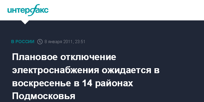 Плановое отключение электроснабжения ожидается в воскресенье в 14 районах Подмосковья