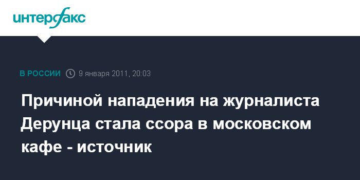 Причиной нападения на журналиста Дерунца стала ссора в московском кафе - источник