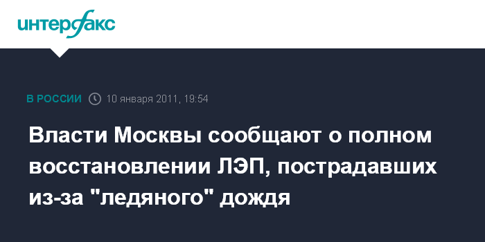 Власти Москвы сообщают о полном восстановлении ЛЭП, пострадавших из-за "ледяного" дождя