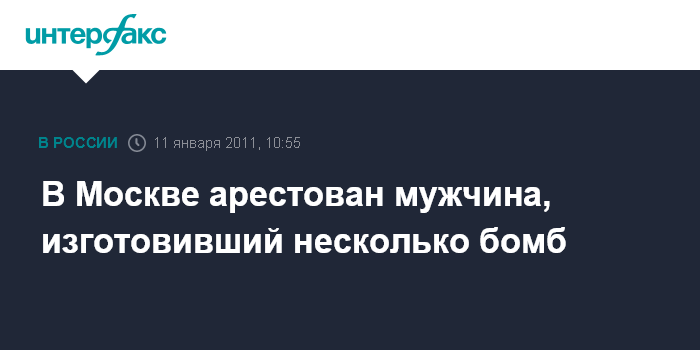 Москвич арестован. Следствию предстоит выяснить, для каких целей он готовил бомбы, добавил собеседник агентства.