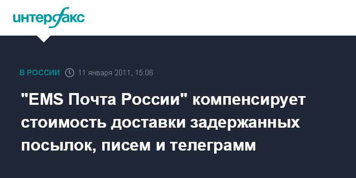 "EMS Почта России" компенсирует стоимость доставки задержанных посылок, писем и телеграмм