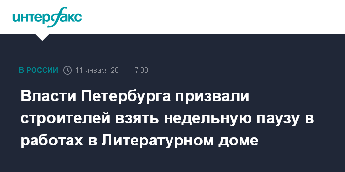 Власти Петербурга призвали строителей взять недельную паузу в работах в Литературном доме