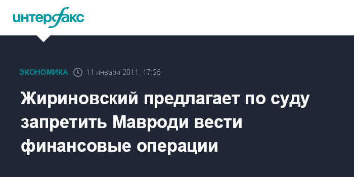 "В отношении его следует принять официальное судебное решение о запрете заниматься любыми финансовыми операциями", - цитирует Жириновского во вторник пресс-служба ЛДПР.