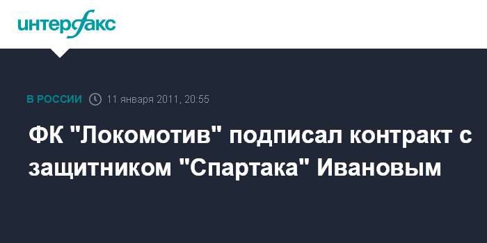 Москва. 11 января. INTERFAX.RU - Московский "Локомотив" во вторник подписал контракт с 22-летним защитником "Спартака" (Москва) Андреем Ивановым.