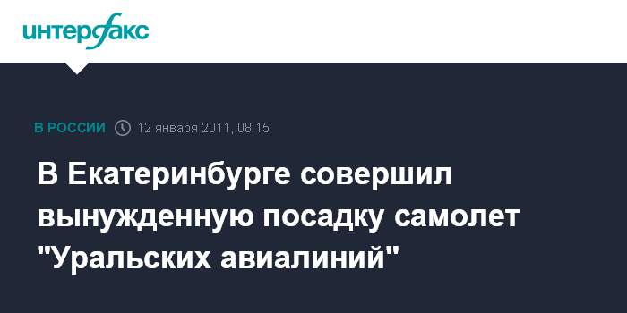 Екатеринбург. 12 января. INTERFAX.RU - Самолет авиакомпании "Уральские авиалинии", выполнявший рейс по маршруту Новосибирск-Краснодар, совершил вынужденную посадку в екатеринбургском аэропорту "Кольцово" 11 января около 20:00, сообщили агентству "Интерфакс" в пресс-службе авиаперевозчика.