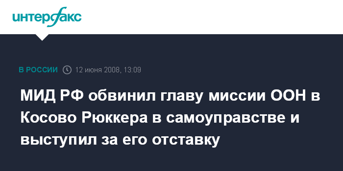 МИД РФ обвинил главу миссии ООН в Косово Рюккера в самоуправстве и выступил за его отставку