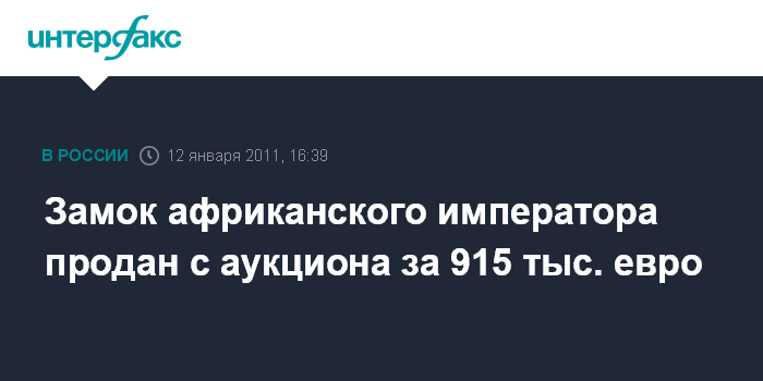 Замок африканского императора продан с аукциона за 915 тыс. евро
