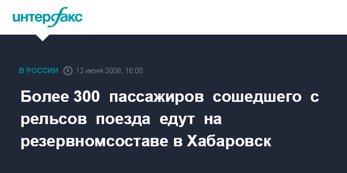 Более 300 пассажиров сошедшего с рельсов поезда едут на резервномсоставе в Хабаровск