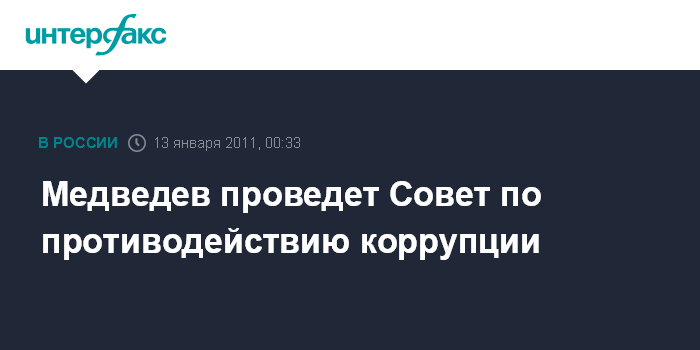 Медведев проведет Совет по противодействию коррупции