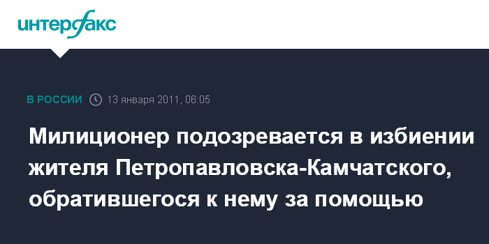 Милиционер подозревается в избиении жителя Петропавловска-Камчатского, обратившегося к нему за помощью