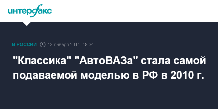 "Классика" "АвтоВАЗа" стала самой подаваемой моделью в РФ в 2010 г.