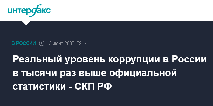 Реальный уровень коррупции в России в тысячи раз выше официальной статистики - СКП РФ