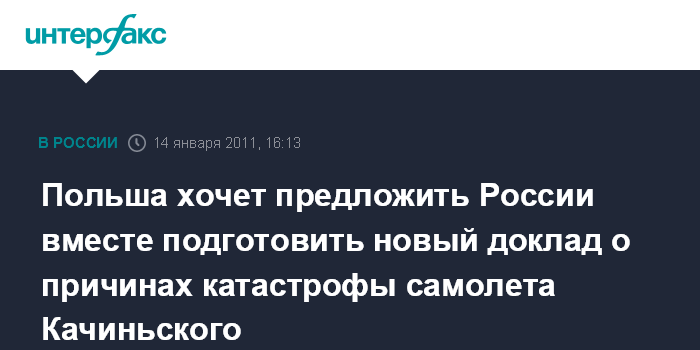 Варшава. 14 января. INTERFAX.RU - Варшава намерена предложить Москве подготовить новый совместный доклад о расследовании причин авиакатастрофы 10 апреля прошлого года под Смоленском, в результате которой погиб президент Польши Лех Качиньский.