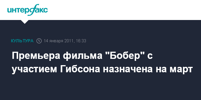 Лондон. 14 января. INTERFAX.RU - Премьера нового фильма с участием Джоди Фостер и Мэла Гибсона "Бобер" (The Beaver) состоится в марте в Техасе, сообщила в пятницу BBC.