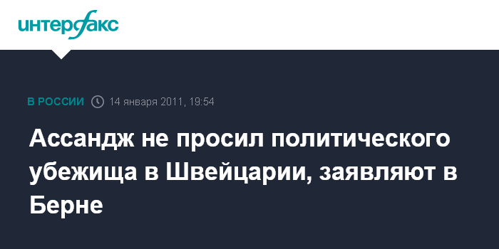 Между тем, впоследствии Дж.Ассандж никогда не подтверждал свое желание получить политическое убежище в Швейцарии.
