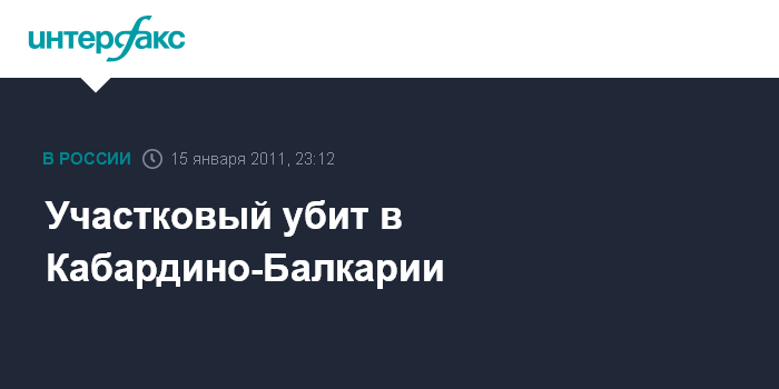 Нальчик. 15 января ИНТЕРФАКС-ЮГ - В Баксанском районе Кабардино-Балкарии в субботу вечером убит старший участковый уполномоченный, сообщил в субботу вечером агентству "Интерфакс-Юг" представитель следственного управления СКР по КБР.