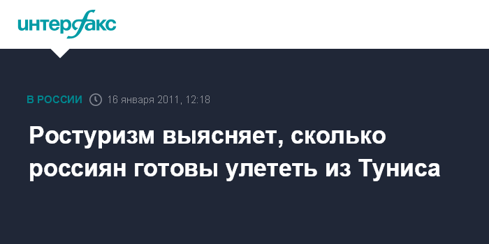 Москва. 16 января. INTERFAX.RU - Ростуризм совместно с консульскими работниками уточняет количество россиян, которые придут в аэропорт тунисского города Монастир, чтобы вместе с туристами вылететь на родину, сообщил пресс-секретарь Федерального агентства по туризму (Ростуризм) Олег Мосеев. По его словам, Ростуризм находится в постоянном контакте с консульскими работниками и собирает информацию о том, сколько конкретно людей решит воспользоваться сегодняшним рейсом "Трансаэро", купить билеты и покинуть Тунис.
