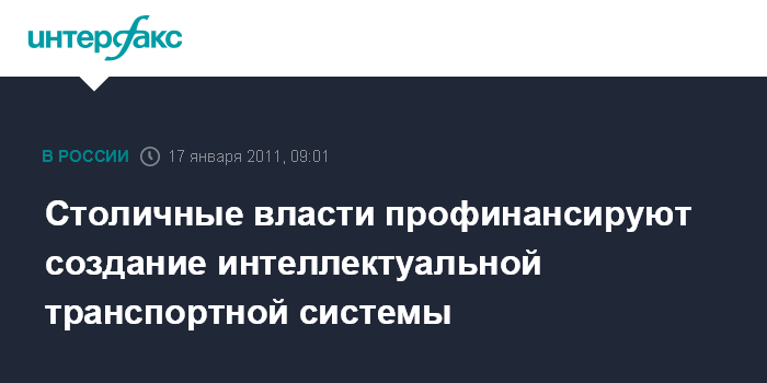 Москва. 17 января. INTERFAX.RU - Из городского бюджета в 2011 году будет выделено до 6,26 млрд рублей на создание интеллектуальной транспортной системы (ИТС), сообщил "Интерфаксу" источник в горадминистрации в понедельник.