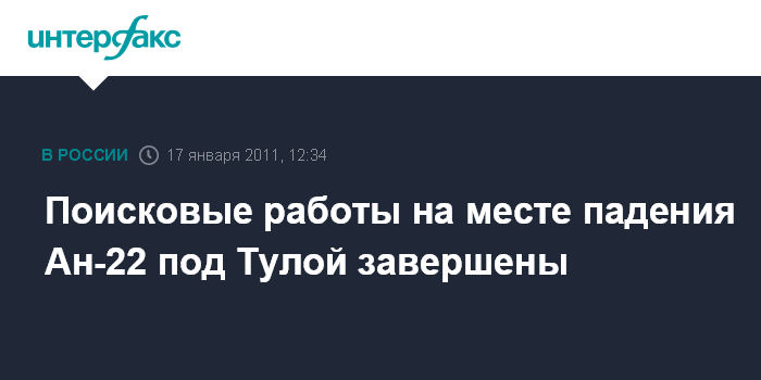 Ранее заместитель командующего военно-транспортной авиацией генерал-майор Валерий Шемякин заявил, что окончательные выводы причины падения самолета Ан-22 под Тулой будут сделаны не ранее 20 февраля.