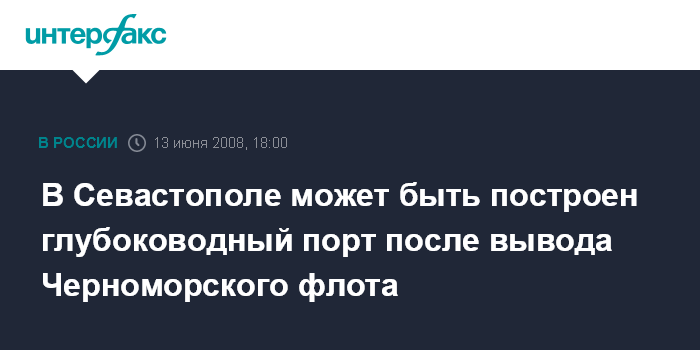 Киев. 13 июня. ИНТЕРФАКС-УКРАИНА - Украина изучает вопрос создания в Севастополе глубоководного порта после вывода Черноморского флота РФ в 2017 году, который бы мог обеспечивать морскую торговлю по линии Тихий океан - Атлантический океан - Средиземное море - Черное море - Евразия.