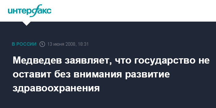 Медведев заявляет, что государство не оставит без внимания развитие здравоохранения