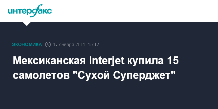 Москва. 17 января. INTERFAX.RU - Подписан контракт на поставку мексиканской авиакомпании Interjet 15 российских региональных самолетов "Сухой Суперджет 100", сообщает в понедельник американская газета The Wall Street Journal со ссылкой на заявление компании Finmeccanica SpA.
