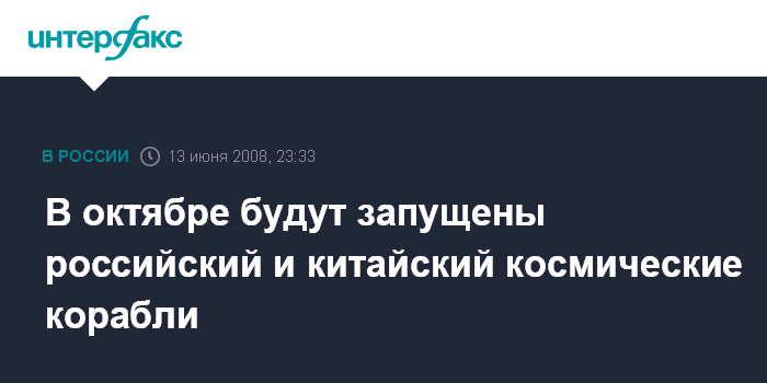 В то же время, по информации Роскосмоса, на октябрь запланирован полет китайского космического корабля Shen Zhou-7. Во время полета должен быть осуществлен первый китайский выход в открытый космос.