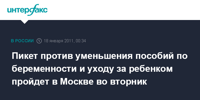 Пикет против уменьшения пособий по беременности и уходу за ребенком пройдет в Москве во вторник