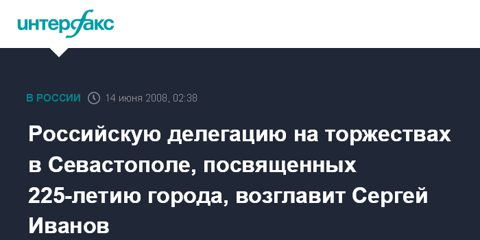 "14 июня я собираюсь в качестве представителя правительства РФ посетить город Севастополь, который отмечает свой юбилей - 225-летие", - заявил С.Иванов журналистам.