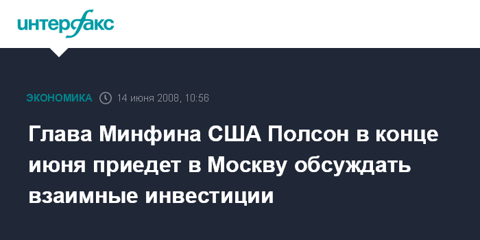 Глава Минфина США Полсон в конце июня приедет в Москву обсуждать взаимные инвестиции