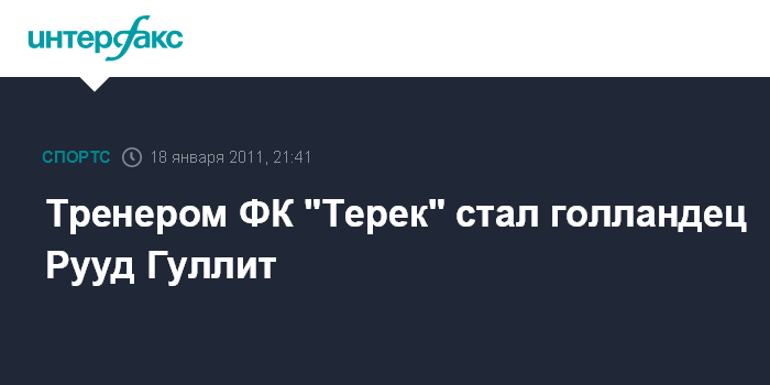 Грозный. 18 января. INTERFAX.RU - Грозненскую футбольную команду "Терек" в новом сезоне будет тренировать голландец Рууд Гуллит, сообщил во вторник вечером журналистам глава Чеченской республики Рамзан Кадыров.