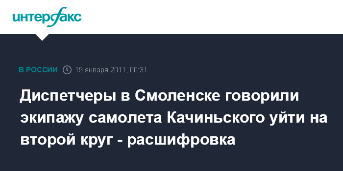 Диспетчеры в Смоленске говорили экипажу самолета Качиньского уйти на второй круг - расшифровка