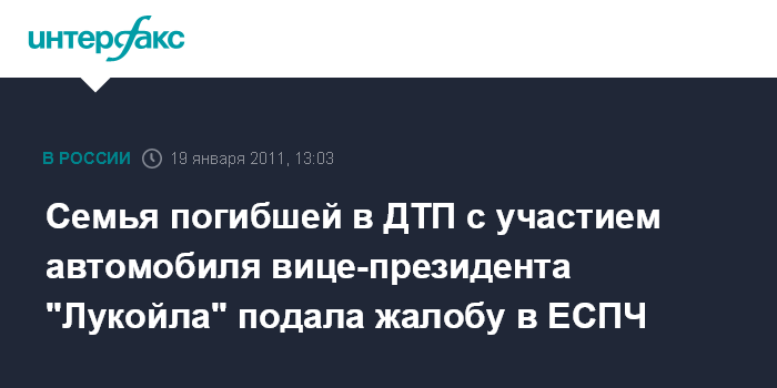 Семья погибшей в ДТП с участием автомобиля вице-президента "Лукойла" подала жалобу в ЕСПЧ