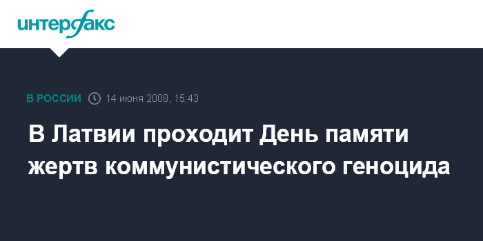 Рига. 14 июня. ИНТЕРФАКС/BNS - Президент Латвии Валдис Затлерс в связи с отмечаемым в этой стране Днем памяти жертв коммунистического геноцида призвал не забывать об этой трагедии латвийской истории.