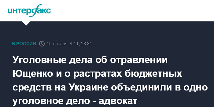 Уголовные дела об отравлении Ющенко и о растратах бюджетных средств на Украине объединили в одно уголовное дело - адвокат