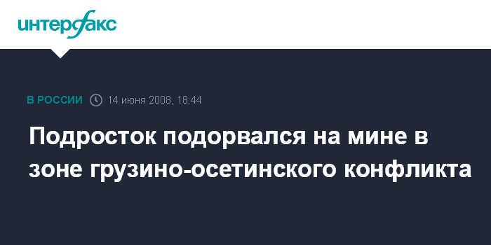 Тбилиси. 14 июня. ИНТЕРФАКС - В зоне грузино-осетинского конфликта в субботу на мине подорвался 14-летний подросток.