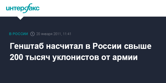 По его словам, около 200 тыс. призывников не желают получить повестки (на явку в военкомат - ИФ), уклоняются от получения повесток или убыли с места прописки без снятия с военного учета.
